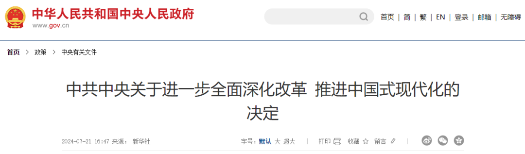 7月21日,《中共中央关于进一步全面深化改革 推进中国式现代化的决定》发布。